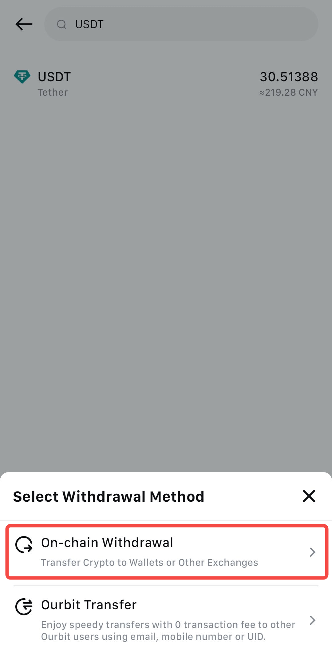 Используя функцию [Вывод] на Ourbit, вы можете перевести свои криптоактивы в личный кошелёк.