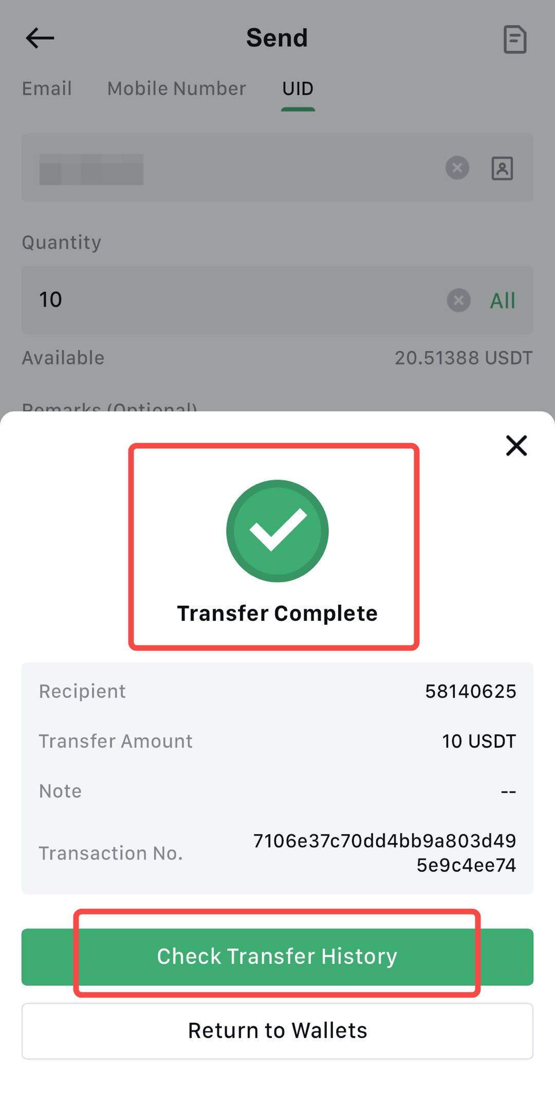 После завершения вы сможете получить квитанцию о транзакции (TxID) на странице деталей вывода.