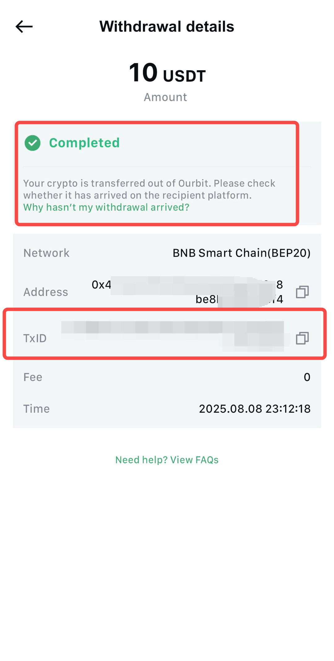 Sau khi hoàn tất, bạn có thể lấy biên lai giao dịch (TxID) tại trang chi tiết rút tiền.