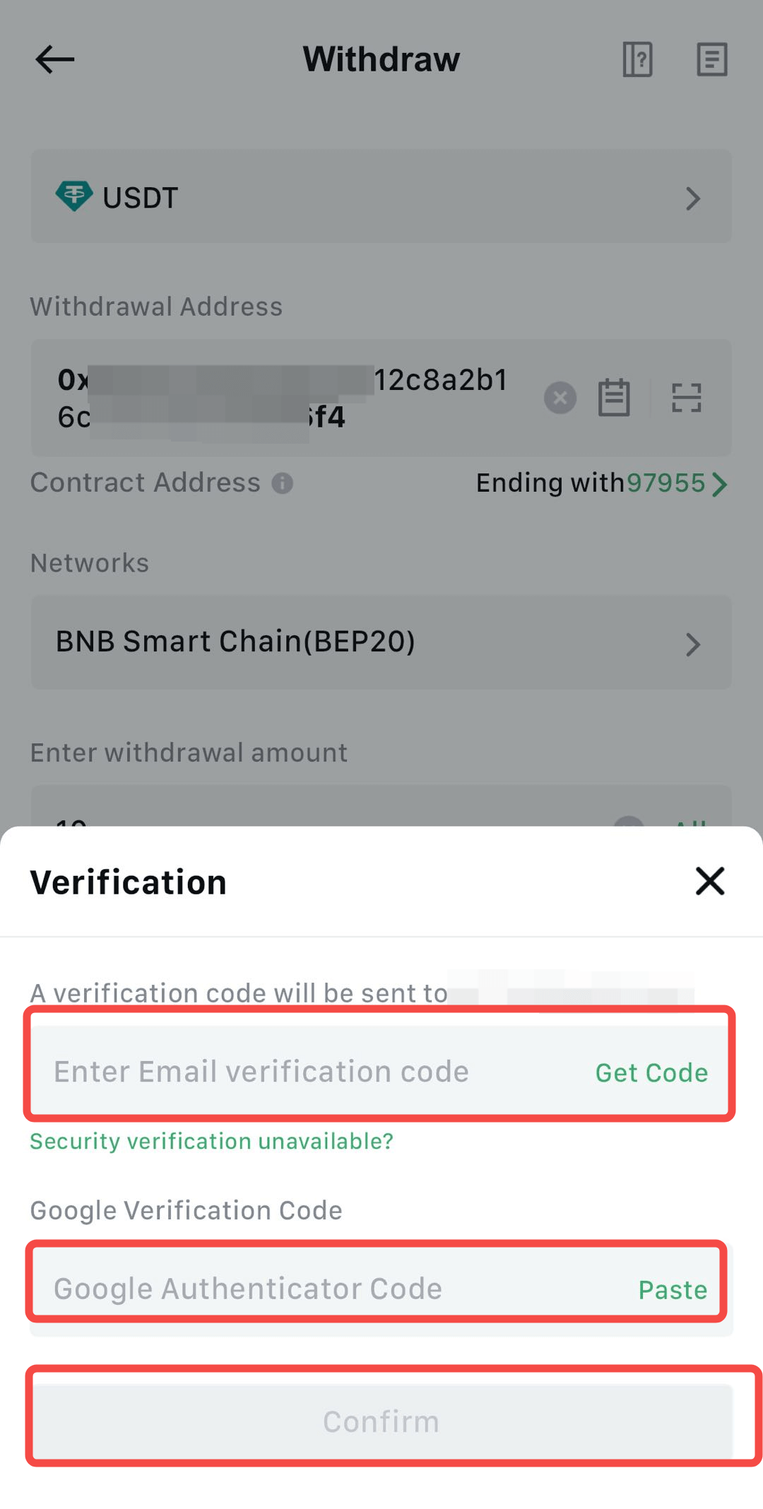 5.Nhập mã xác minh email và mã Google Authenticator, sau đó nhấn [Confirm].