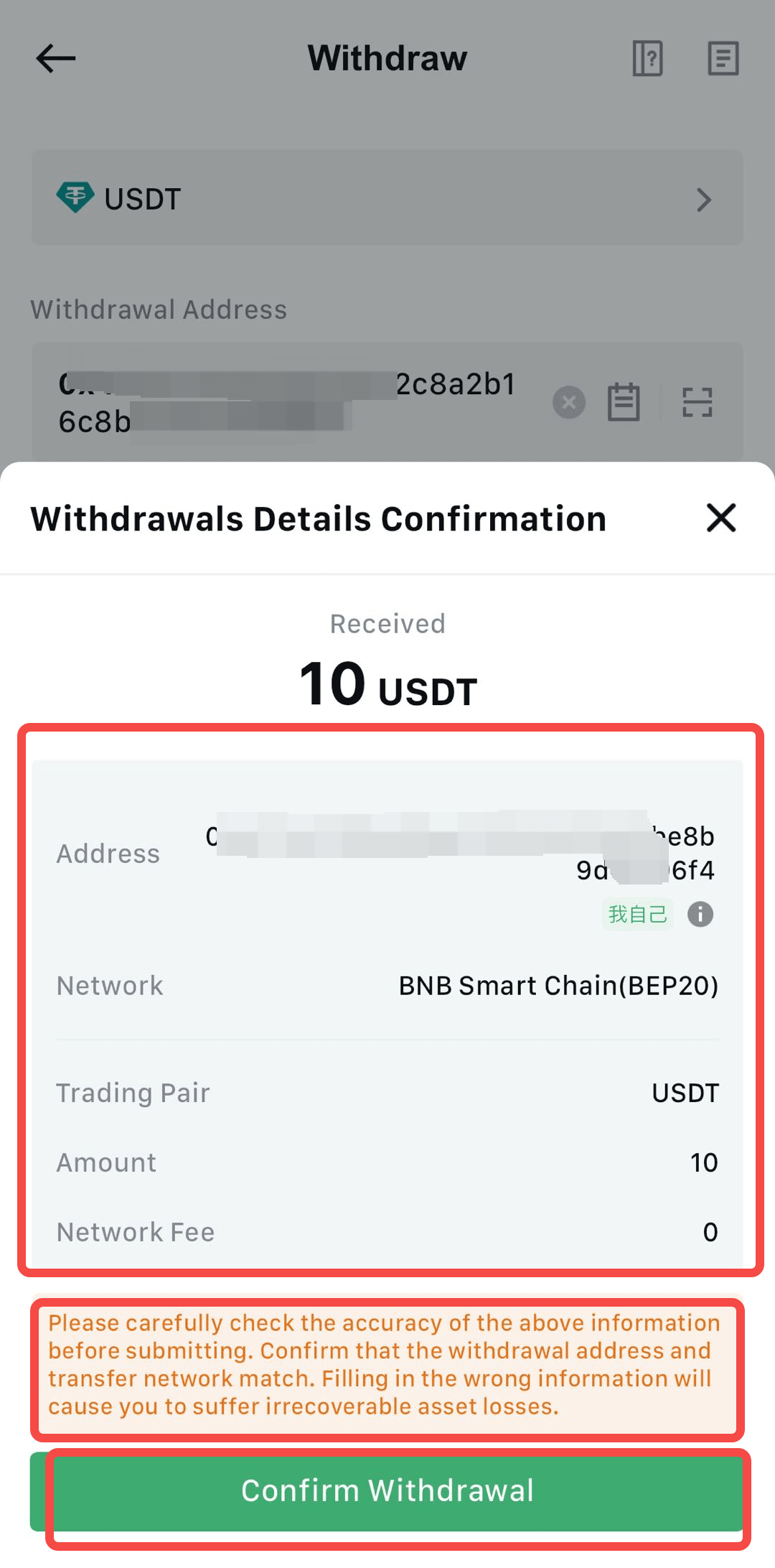 4.Sau khi xác nhận tất cả thông tin đã chính xác, nhấn [Confirm Withdrawal].