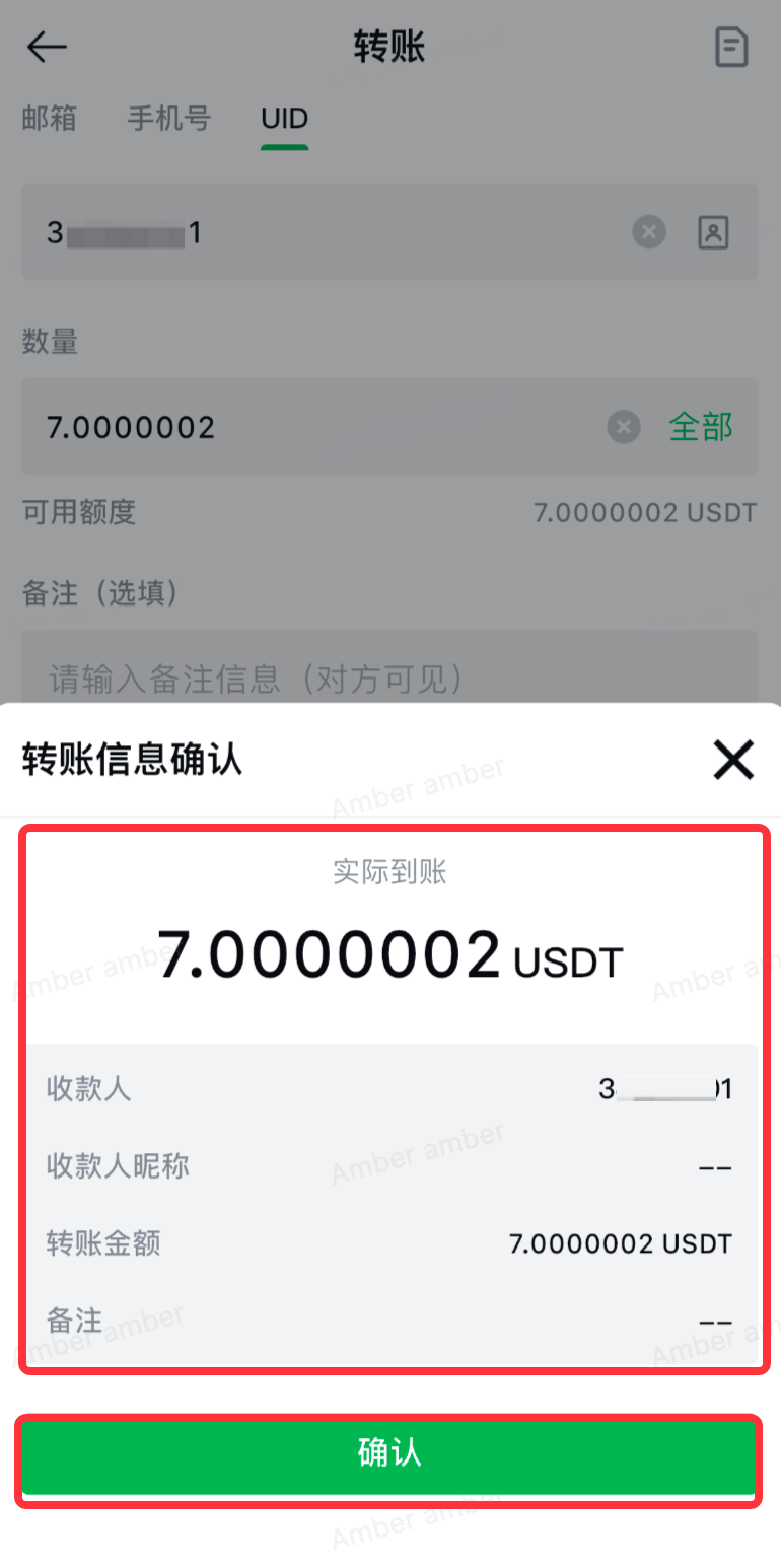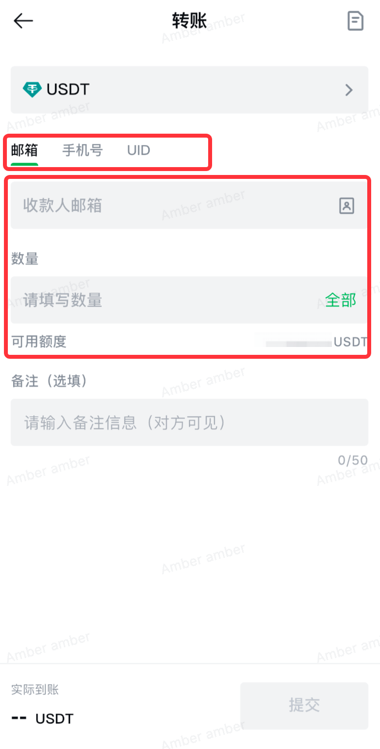 第四步:填写对应信息,填写转账数量,点击【提交】。