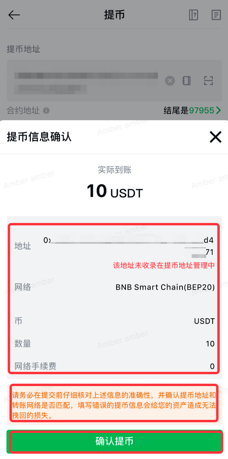 请仔细核对您的提币地址是否匹配该链路,如对方平台不支持该链路,您的资产将会丢