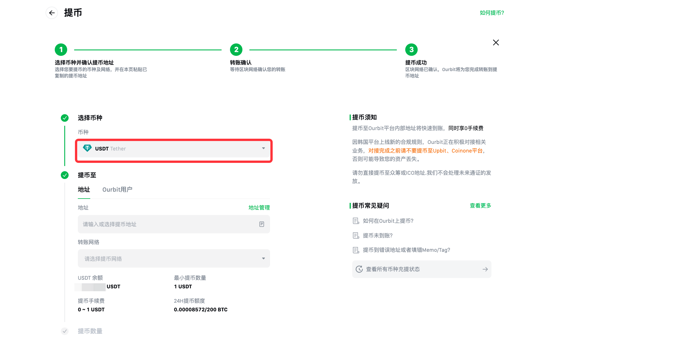 - USDT等支持多个链的币种,提现时请您务必选择地址所对应的网络进行提现申请。