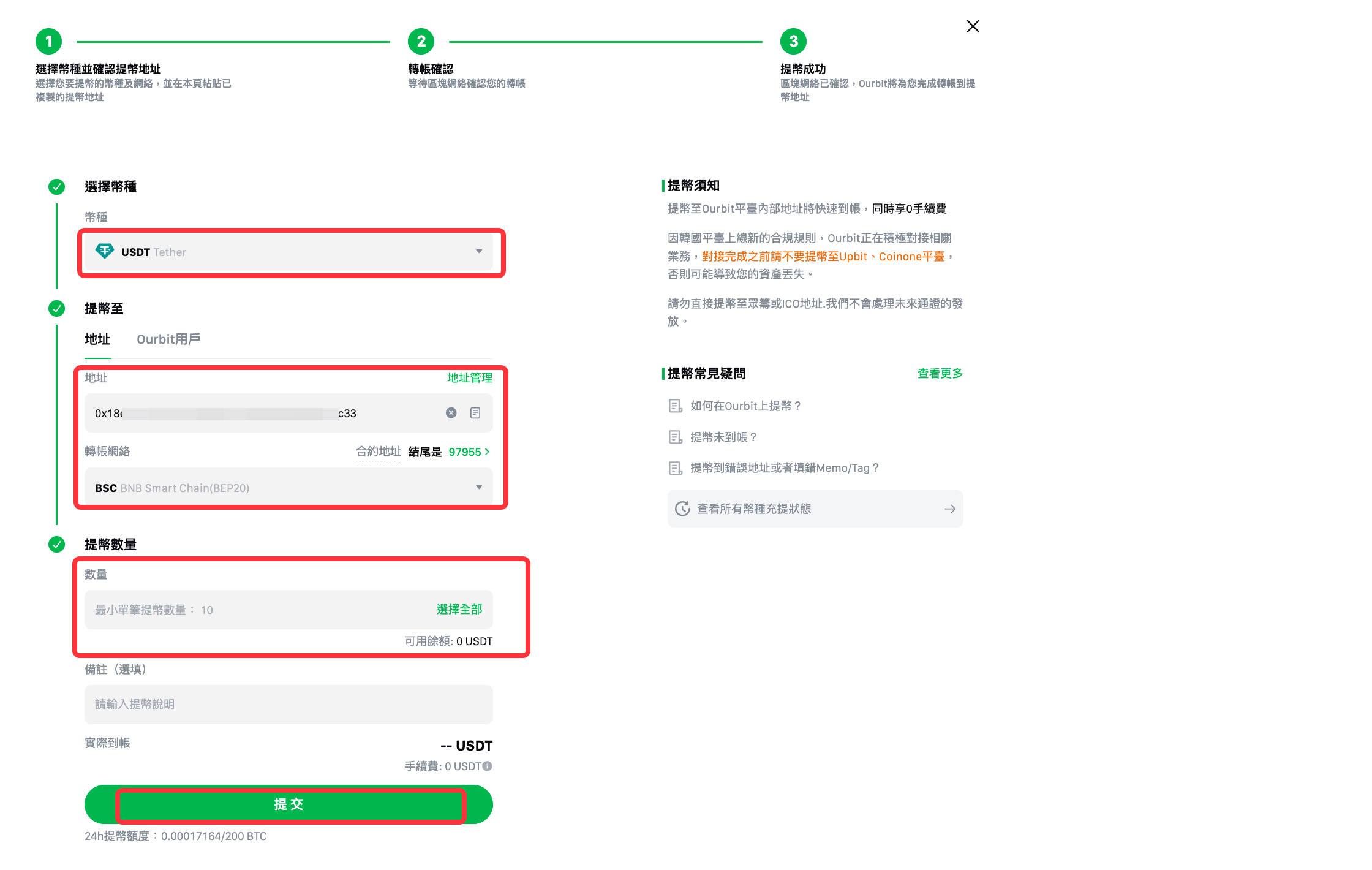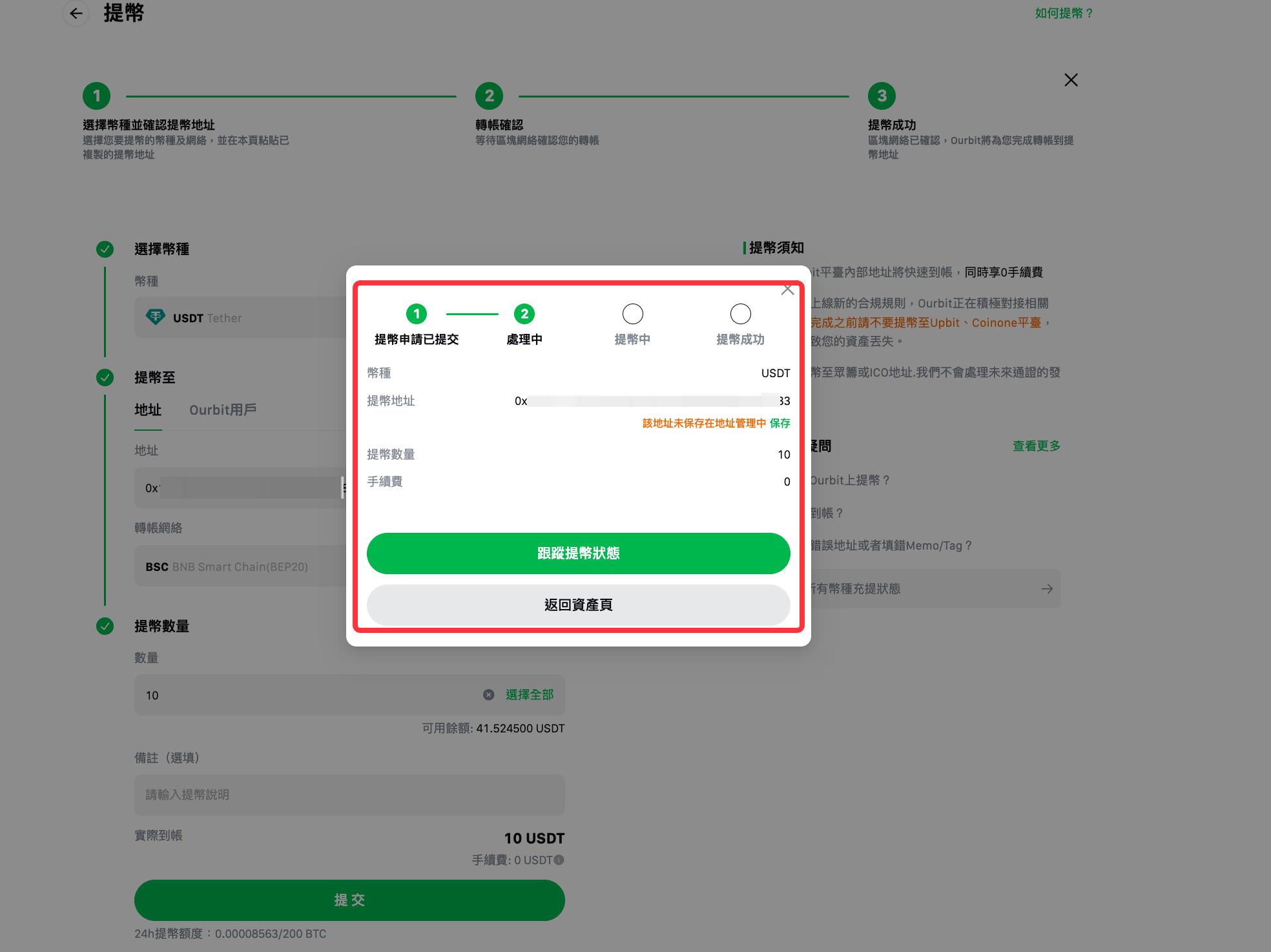 - 完成後可在提幣詳情頁面獲取交易憑證(TxID)
