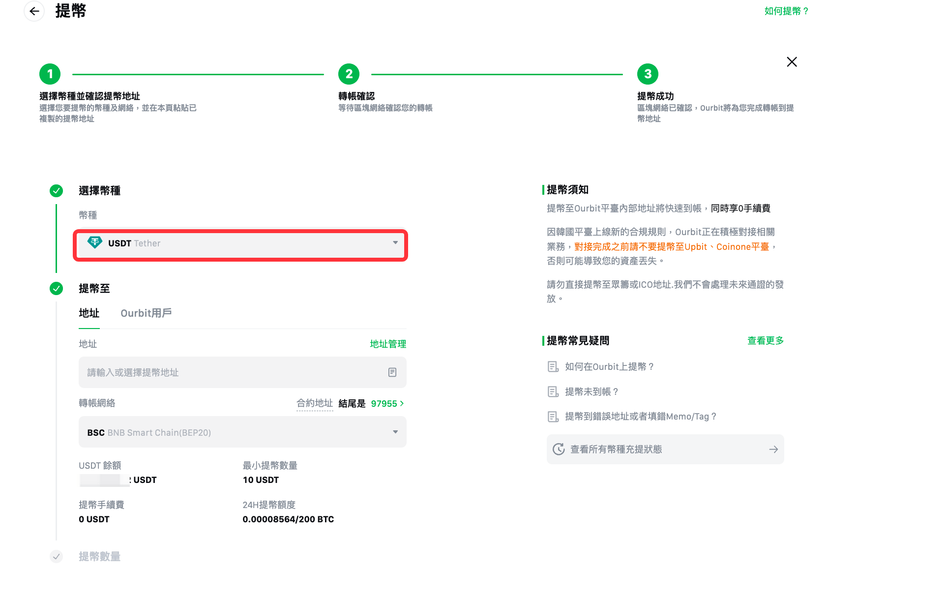 - USDT等支持多個鏈的幣種,提現時請您務必選擇地址所對應的網絡進行提現申請。
