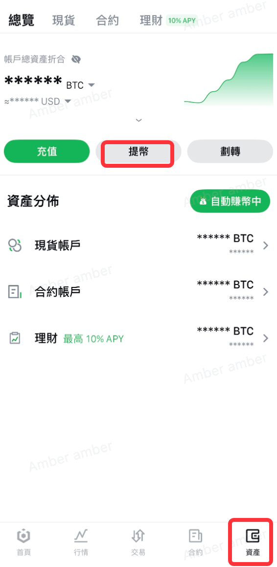 1.打開Ourbit App,點擊【資產】-【提幣】。