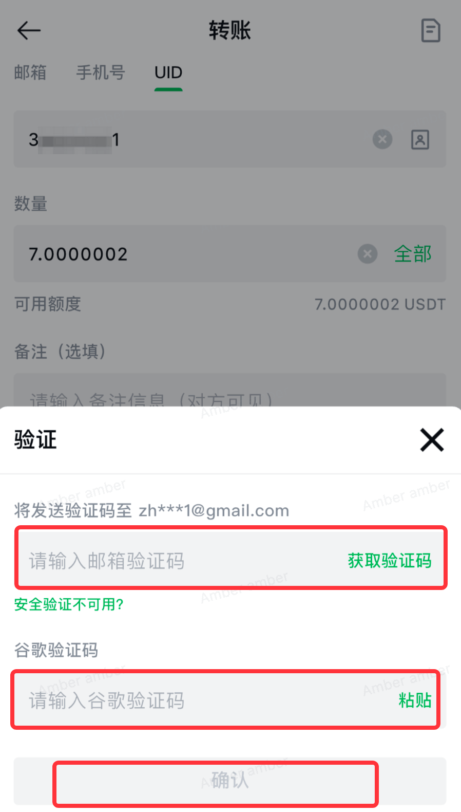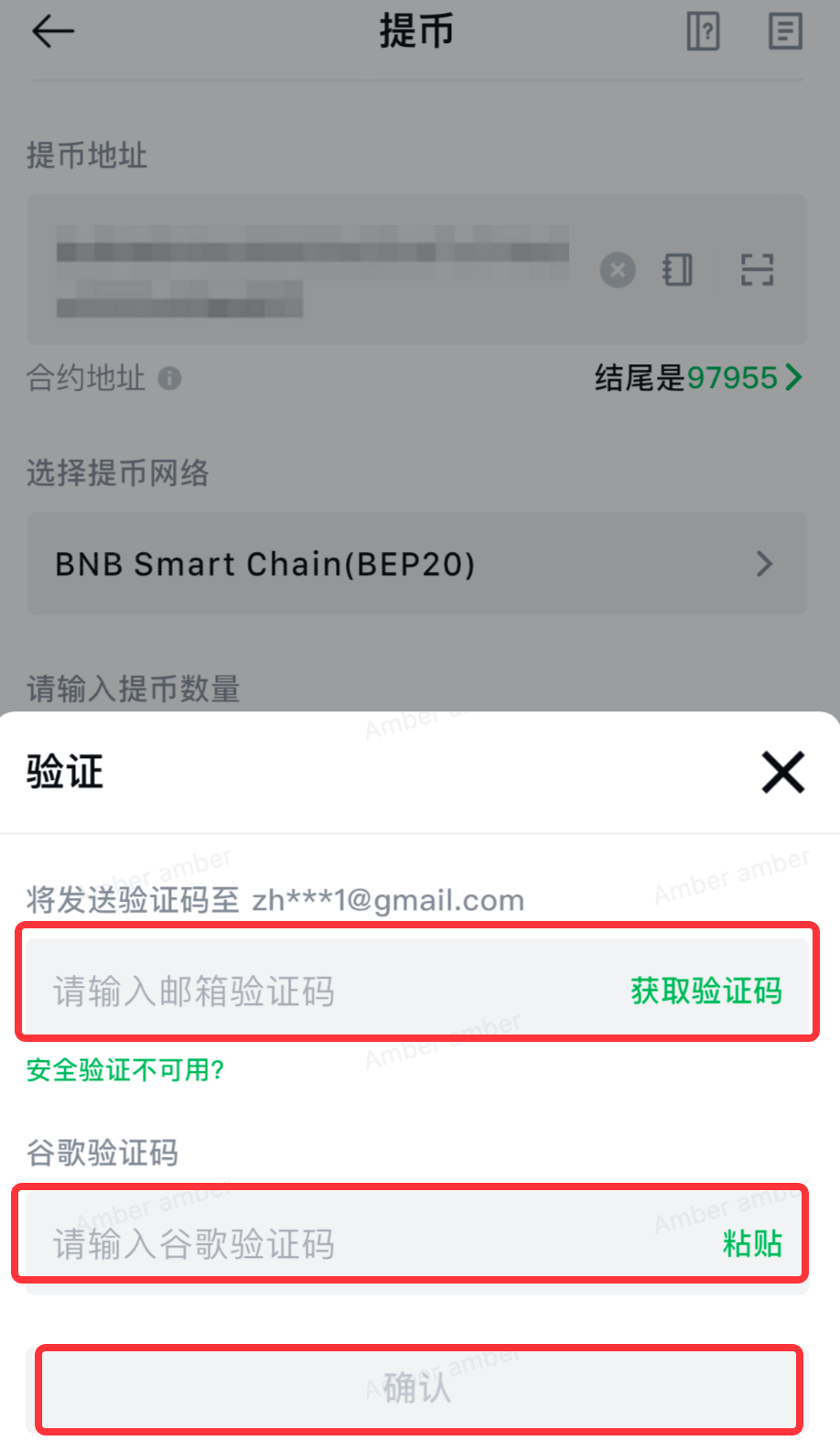 5.填寫郵箱驗證碼和谷歌驗證碼,然後點擊【確認】。