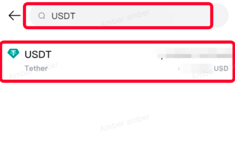 2.頁面跳轉後請選擇您需要提現的數字貨幣,此處可以進行幣種搜索(USDT爲例)-點擊幣種