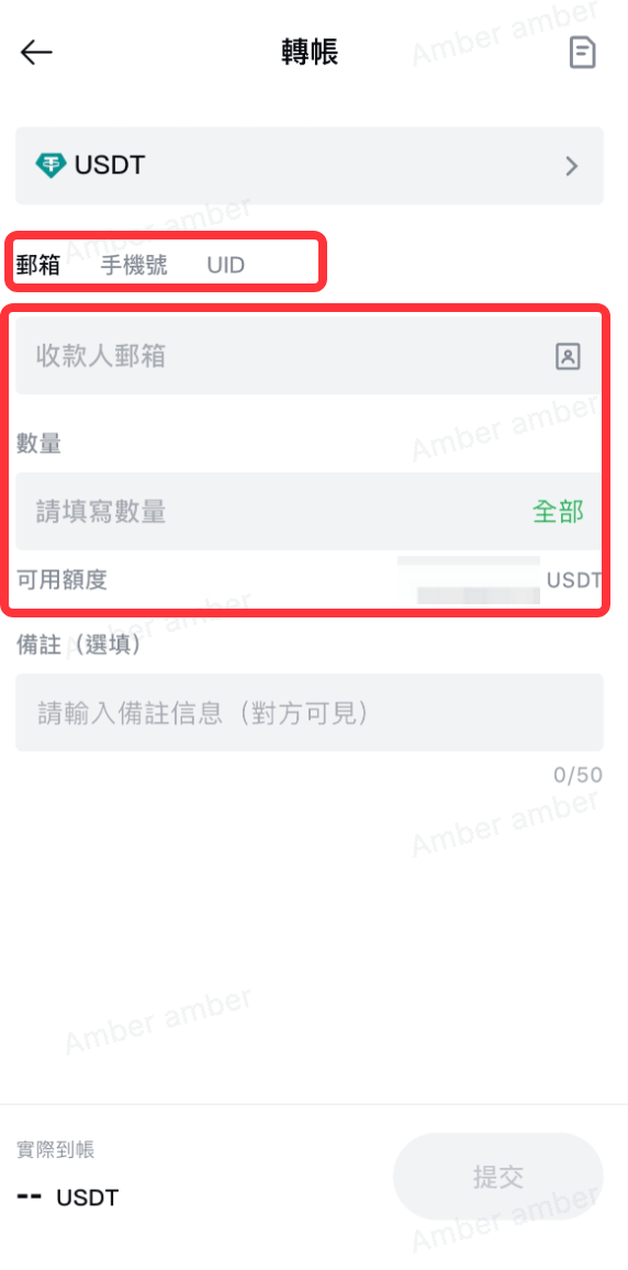 第四步:填寫對應信息,填寫轉賬數量,點擊【提交】。